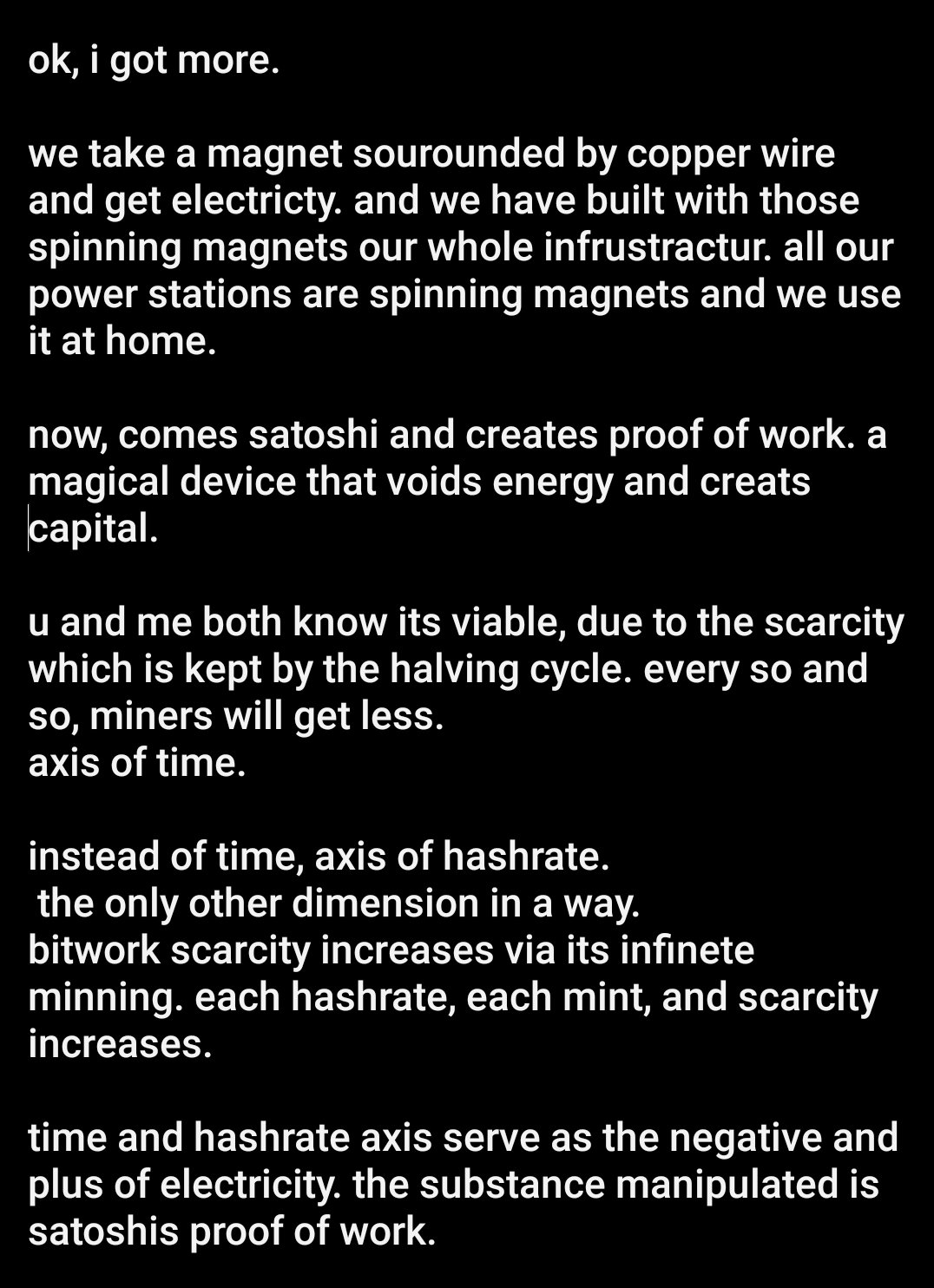 satoshi shows us, that proof of work accross the axis of time, manifests scarcity.